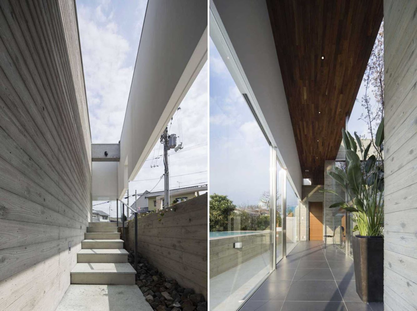 The purpose in choosing such heavy material was that it was imperative the wall rest in balance with the building architecturally. the one-story design was realized in consideration of the structural requirements of the wall and the habitability of the house. the ukikabe solves a number of issues. It successfully obstructs the view from any floor of the neighboring apartment building, yet from inside the residence, one can see the feet of those approaching the property.