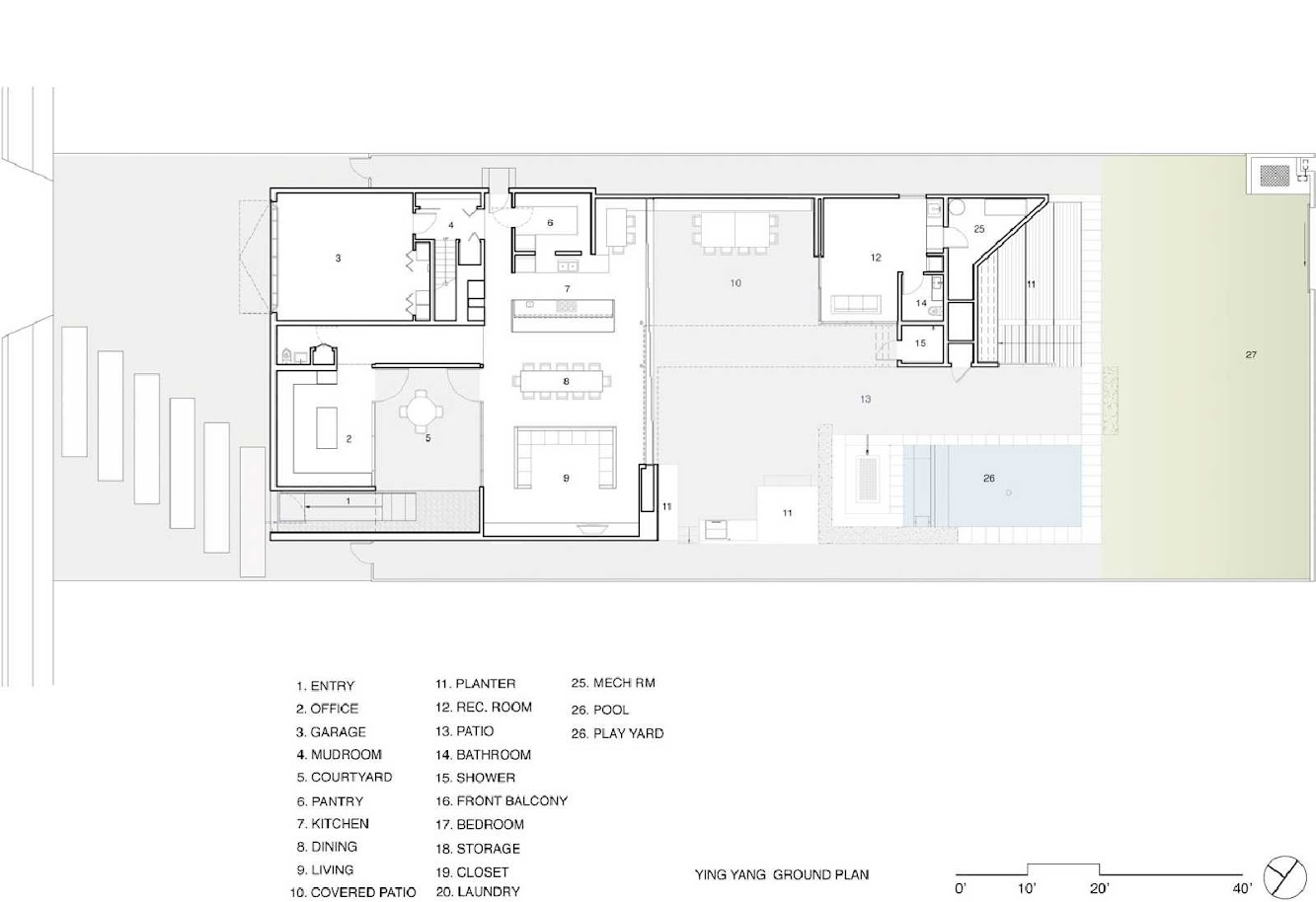 The Yin-Yang House is a single-family home in a quiet Venice, Ca neighborhood. the design objective was to create a space for a large and growing family with several children, which would create a calm, relaxed and organized environment that emphasizes public family space.