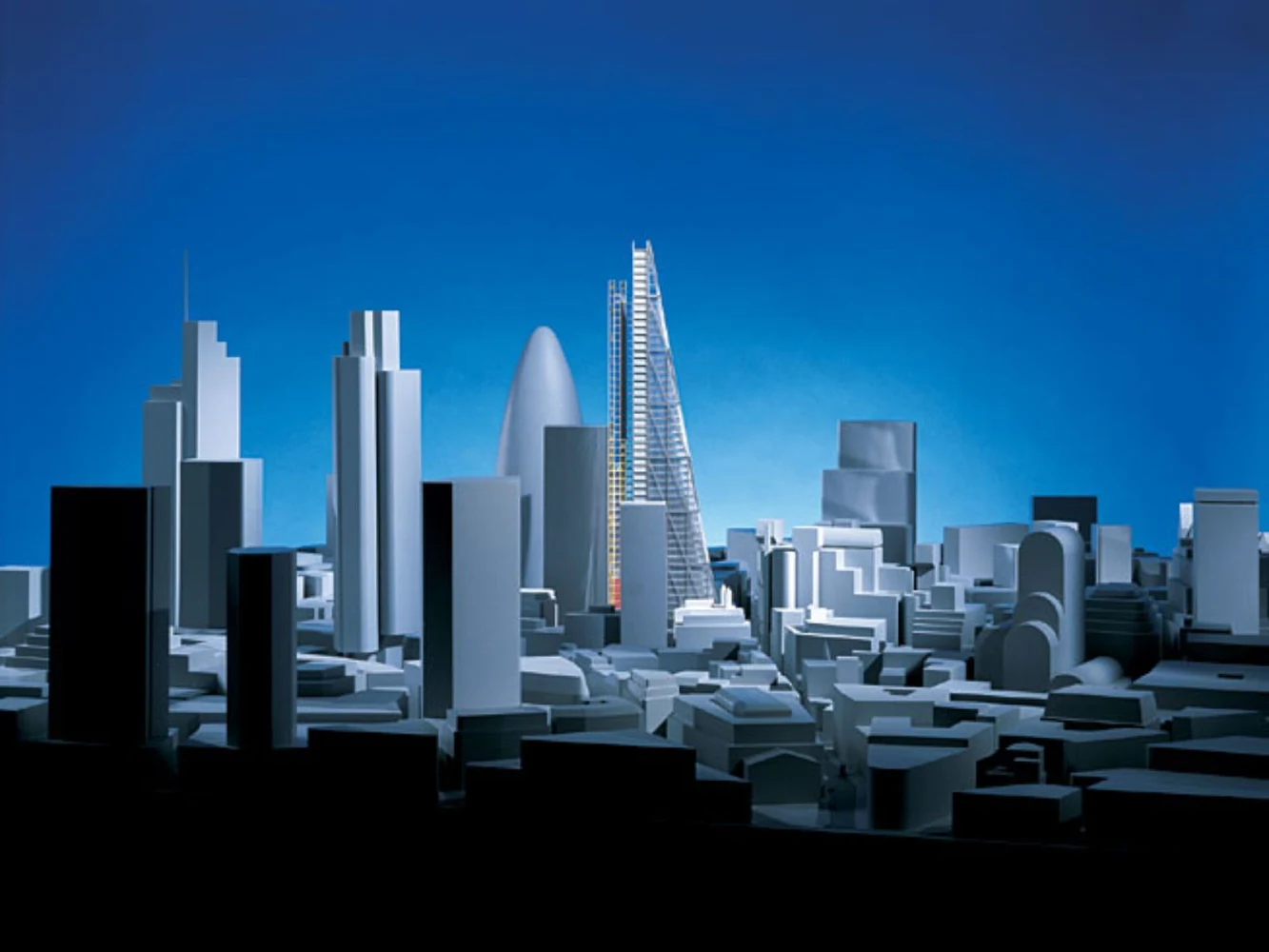 The ladder frame contributes to the vertical emphasis of the building, and encloses the fire-fighting cores that serve the office floors. the frame also visually anchors the building to the ground. the office floors take the form of simple rectangular floor plates which progressively diminish in depth by 750 millimetres towards the apex.