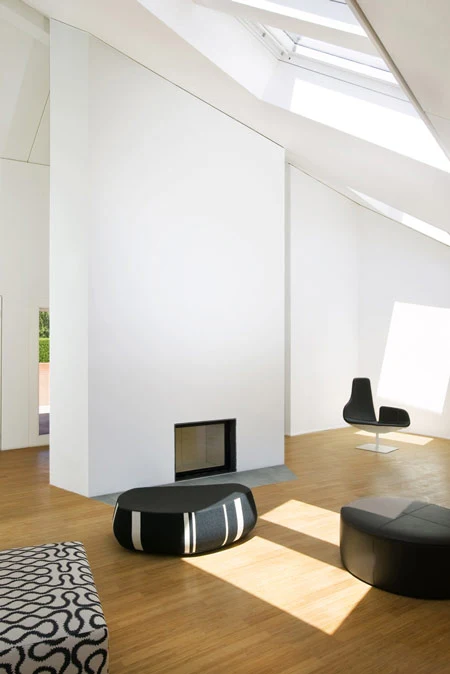 Red House — Home DesignRed House designed by group8 Architects, located in Crans-Près-Céligny, Switzerland.The red houses place themselves in this type of problem, planting another object in this saturated suburban landscape. In this case, the purpose would be not to build an object but a small ‘ensemble’: a little community of individuals who can, through the new scale of the intervention, constitute a good mixture of urban and landscape architecture.The geometry and the volume of each houses serves another purpose: to propose a rich typology, capable of creating an experience of diversity of spaces inside the appartments. The important loggias in each volume enhance this idea. Not only the villas possess exterior terraces but they also have these big loggias, and protected exterior space. More information about red house [via] modern house design.