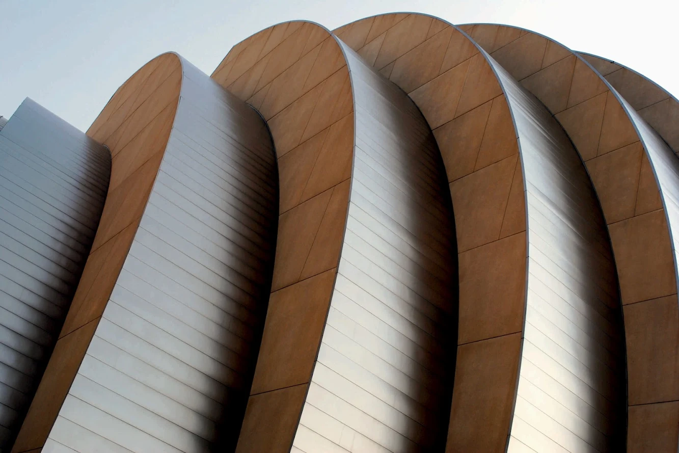 Set on five acres of green surroundings, the Kauffman Center for the Performing Arts has a 180º view of the horizon. This, and the decision to construct two dedicated halls for symphony, ballet, opera and theatre, provided the inspiration for the design. to the north, one sees the drama of the downtown skyline with its grid of streets framing the property and the Kansas City Convention Center.