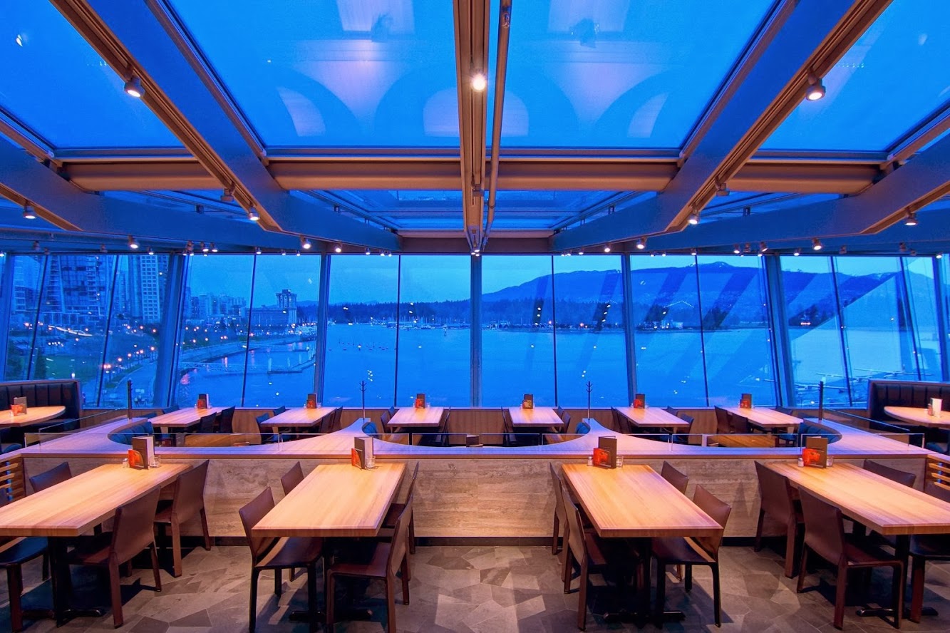 Embedded into the green roof of the Lmn Architects-designed Vancouver Convention Center on the harbour-front, the new 7,350 square foot restaurant, with expansive wrap-around terraces. the restaurant also employs a green roof, which is accessible by both stairs and a glass-sided elevator.